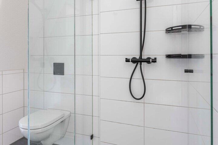 - Douche, inloopdouche, toilet, wastafel, en wastafelmeubel